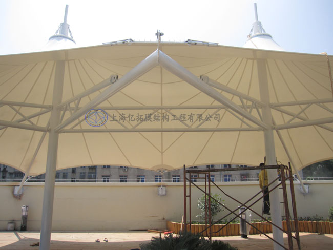 郴州万国大酒店屋顶膜结构景观,湖南亿拓膜建筑工程有限公司,湖南广艺钢膜结构工程有限公司,湖南膜结构,湖南张拉膜,长沙膜结构,湖南钢膜结构,湖南景观空间膜,长沙膜结构车棚,长沙张拉膜安装,长沙膜结构施工