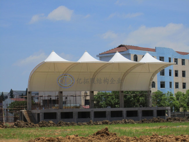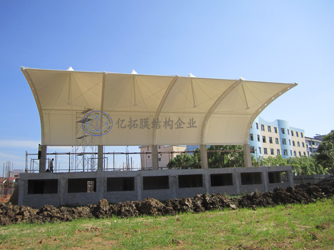 汉寿詹乐贫中学膜结构主席台,湖南亿拓膜建筑工程有限公司,湖南广艺钢膜结构工程有限公司,湖南膜结构,湖南张拉膜,长沙膜结构,湖南钢膜结构,湖南景观空间膜,长沙膜结构车棚,长沙张拉膜安装,长沙膜结构施工