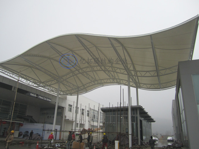 贵州通源汽车文化中心出入口膜结构顶棚,湖南亿拓膜建筑工程有限公司,湖南广艺钢膜结构工程有限公司,湖南膜结构,湖南张拉膜,长沙膜结构,湖南钢膜结构,湖南景观空间膜,长沙膜结构车棚,长沙张拉膜安装,长沙膜结构施工
