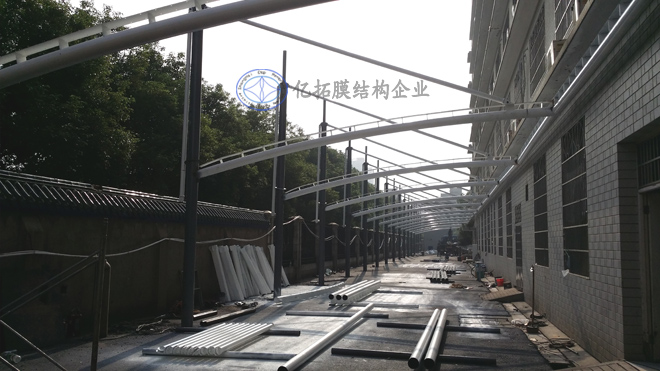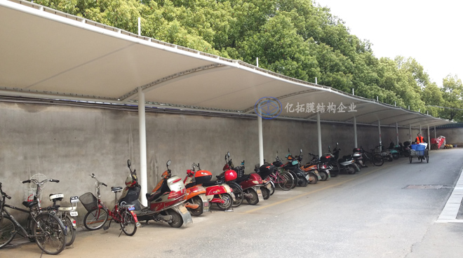 实验中学风雨棚膜结构长廊和张拉膜结构单车棚,湖南亿拓膜建筑工程有限公司,湖南广艺钢膜结构工程有限公司,湖南膜结构,湖南张拉膜,长沙膜结构,湖南钢膜结构,湖南景观空间膜,长沙膜结构车棚,长沙张拉膜安装,长沙膜结构施工