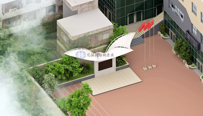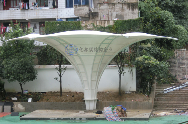 三桥小学膜结构造型主席台,湖南亿拓膜建筑工程有限公司,湖南广艺钢膜结构工程有限公司,湖南膜结构,湖南张拉膜,长沙膜结构,湖南钢膜结构,湖南景观空间膜,长沙膜结构车棚,长沙张拉膜安装,长沙膜结构施工