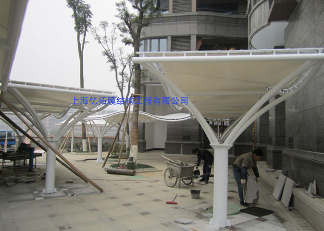 湘域熙岸张拉膜结构电动车棚,湖南亿拓膜建筑工程有限公司,湖南广艺钢膜结构工程有限公司,湖南膜结构,湖南张拉膜,长沙膜结构,湖南钢膜结构,湖南景观空间膜,长沙膜结构车棚,长沙张拉膜安装,长沙膜结构施工